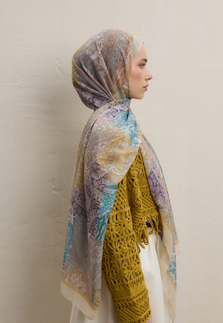 PAISLEY PATCH DESEN İPEK KREP ŞAL SOFT SARI