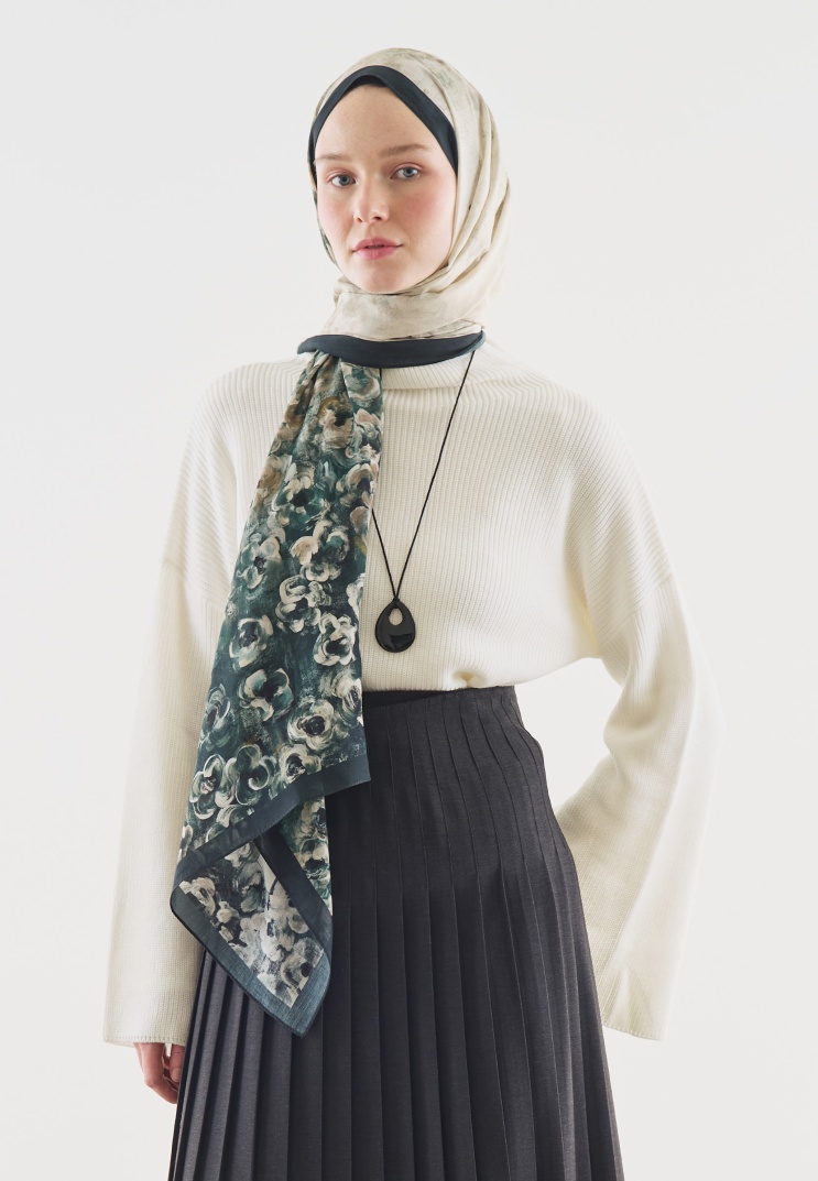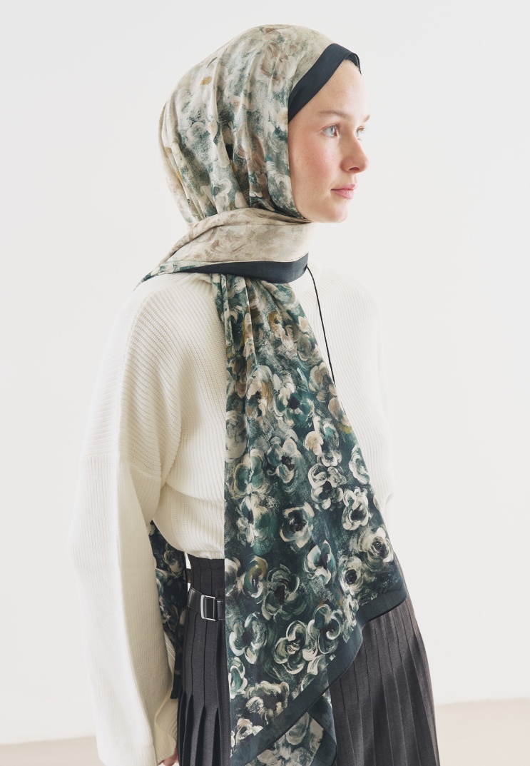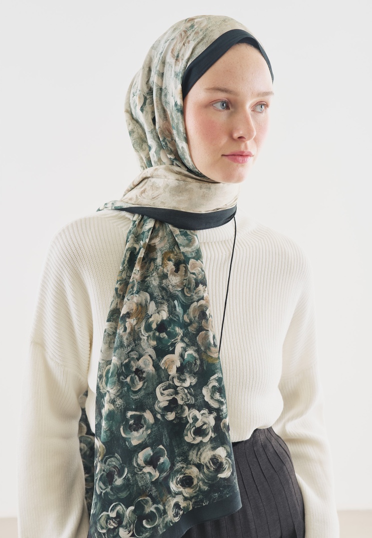 PEARLIE DESENLİ PAMUK VİSKON ŞAL KOYU YEŞİL