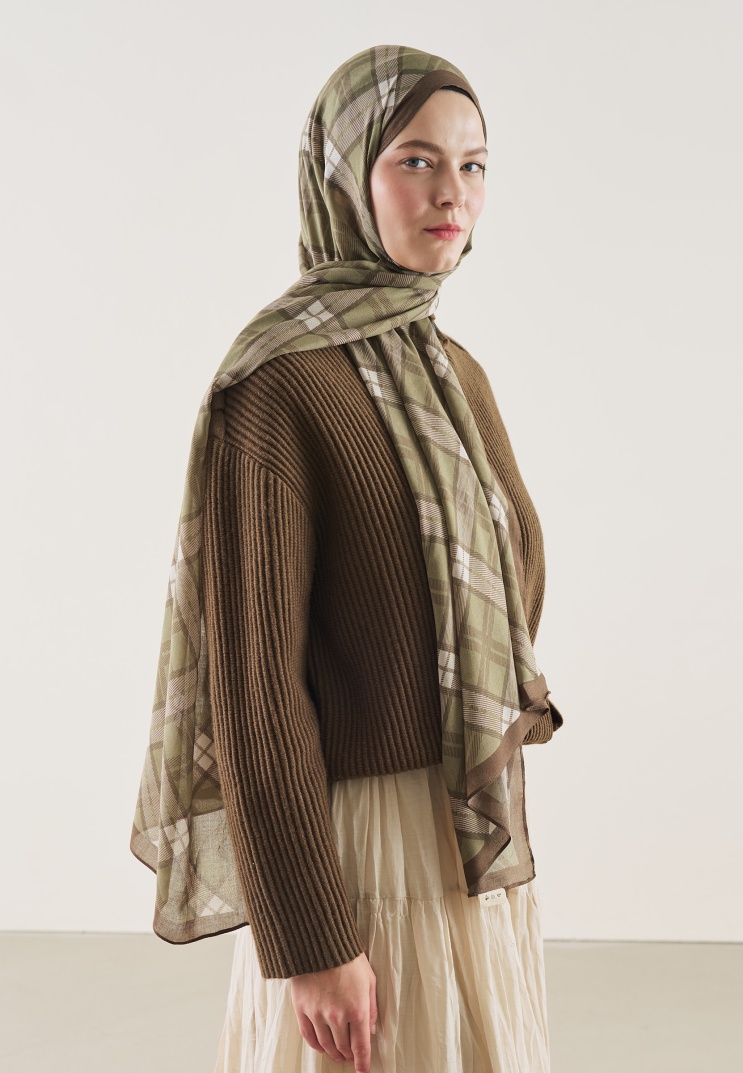 PLAID PATTERN RAMI HIJAB BROWN