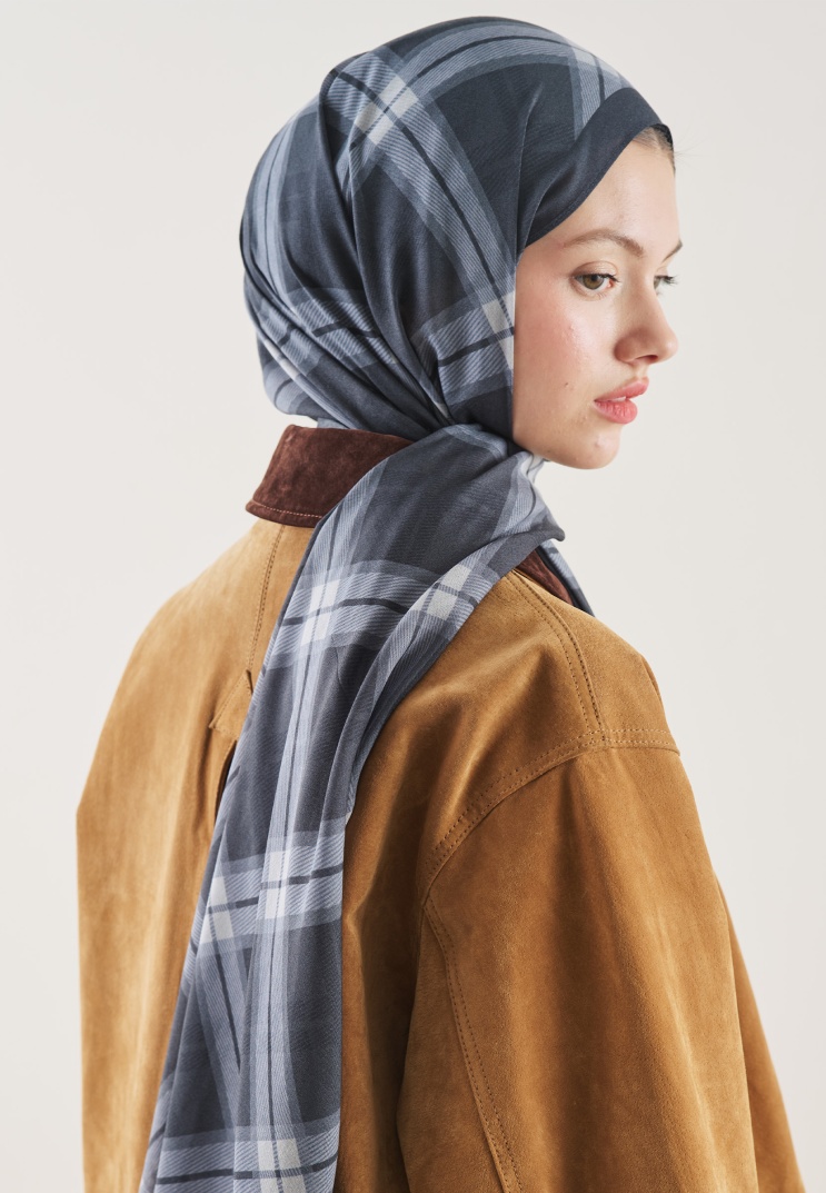 PLAID PATTERN RAMI HIJAB NAVY