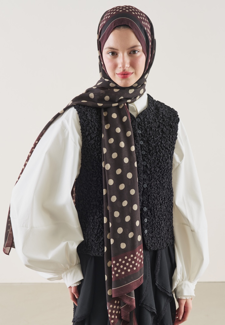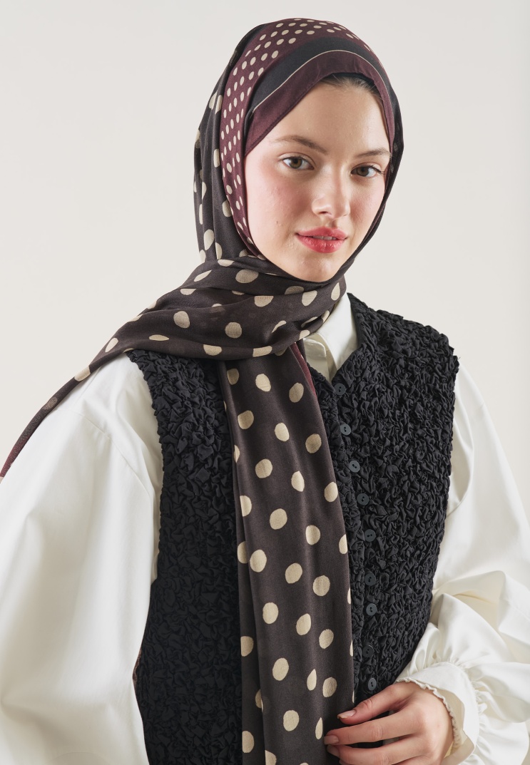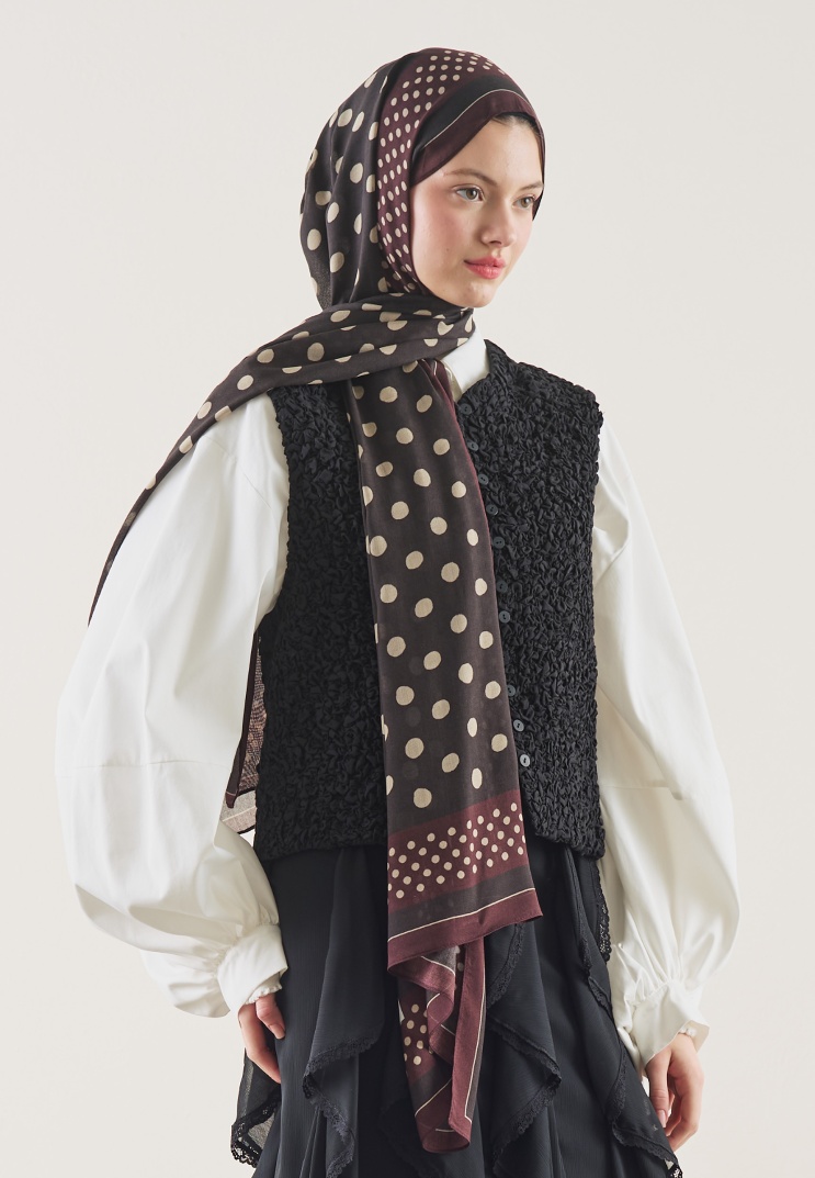 POLKA DOTS PATTERN RAMI HIJAB BITTER COFFEE