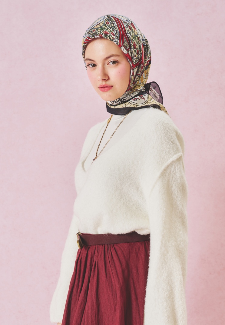 With its natural structure, fluid drape, silk-like feel, and breathable texture that provides all-day comfort, the viscose fabric is brought together with romantic patterns inspired by a fairytale world. The Letters Of Pure Love Hijab Collection presents each hijab with a unique story.
