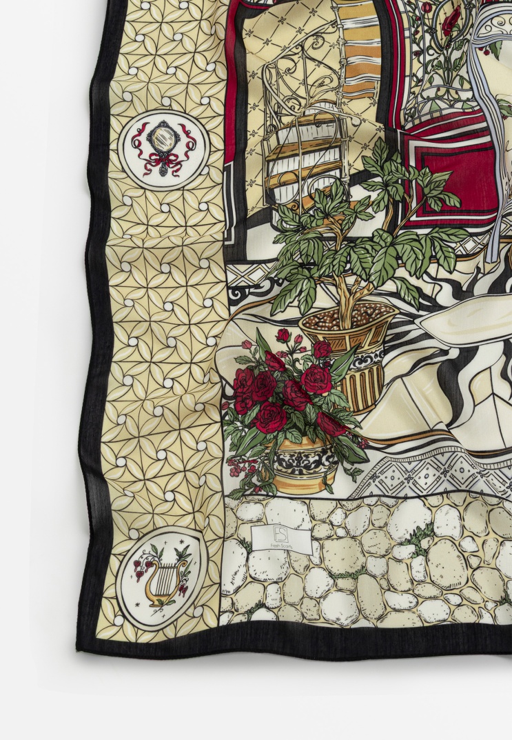 PRECIOUS PARADISE PATTERNED FLOSS VISCOSE SCARF DEEP BLACK