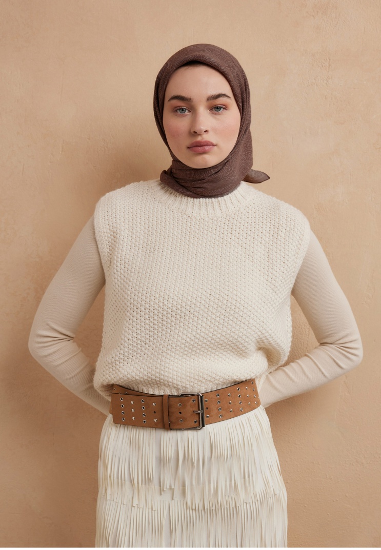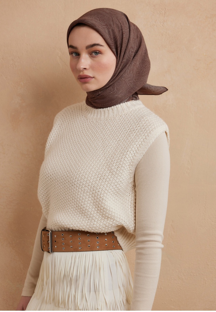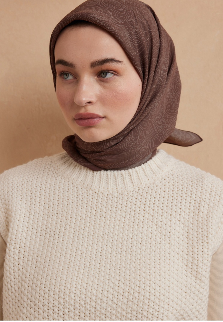 REINA DESEN PAMUK İPEK EŞARP ÇİKOLATA KAHVE