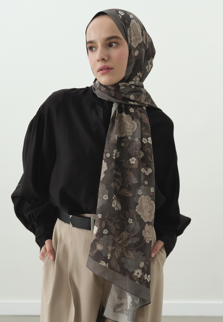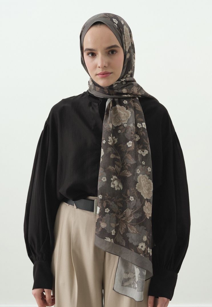 REVERIE DESENLİ PAMUK VİSKON ŞAL FÜME