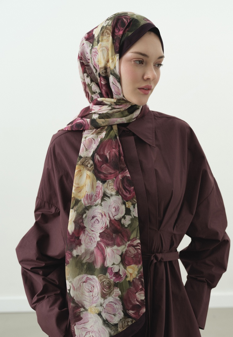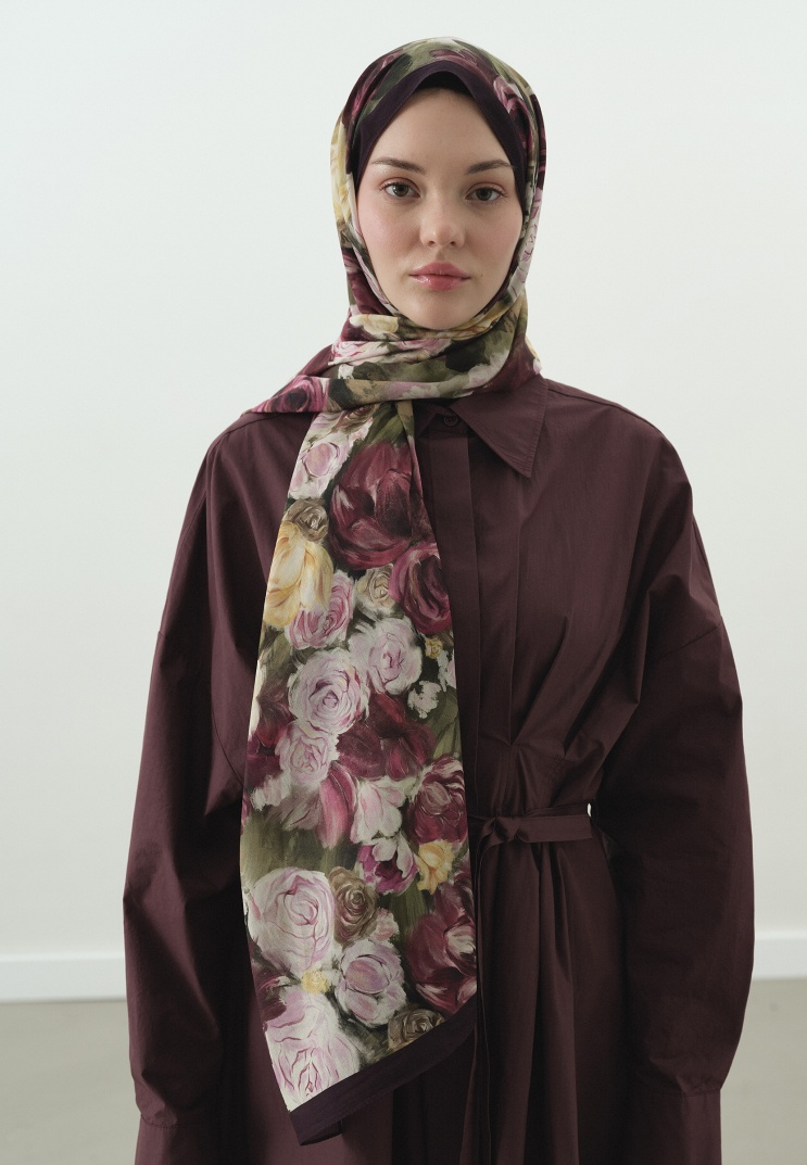 ROSE BREEZE DESENLİ PAMUK VİSKON ŞAL MÜRDÜM