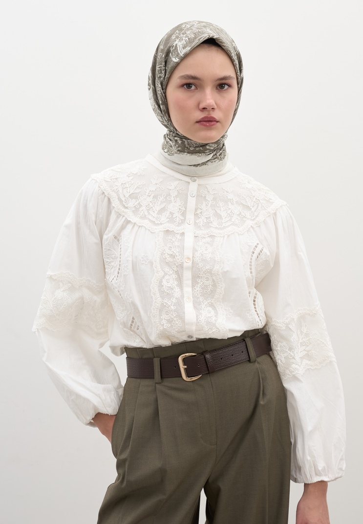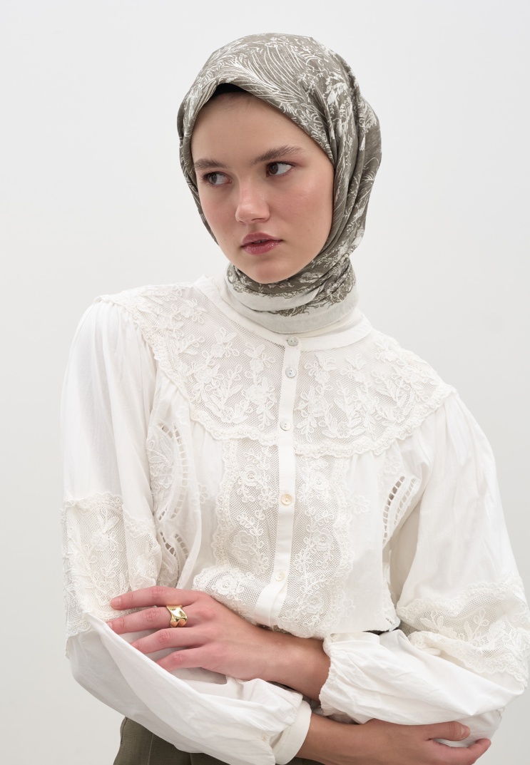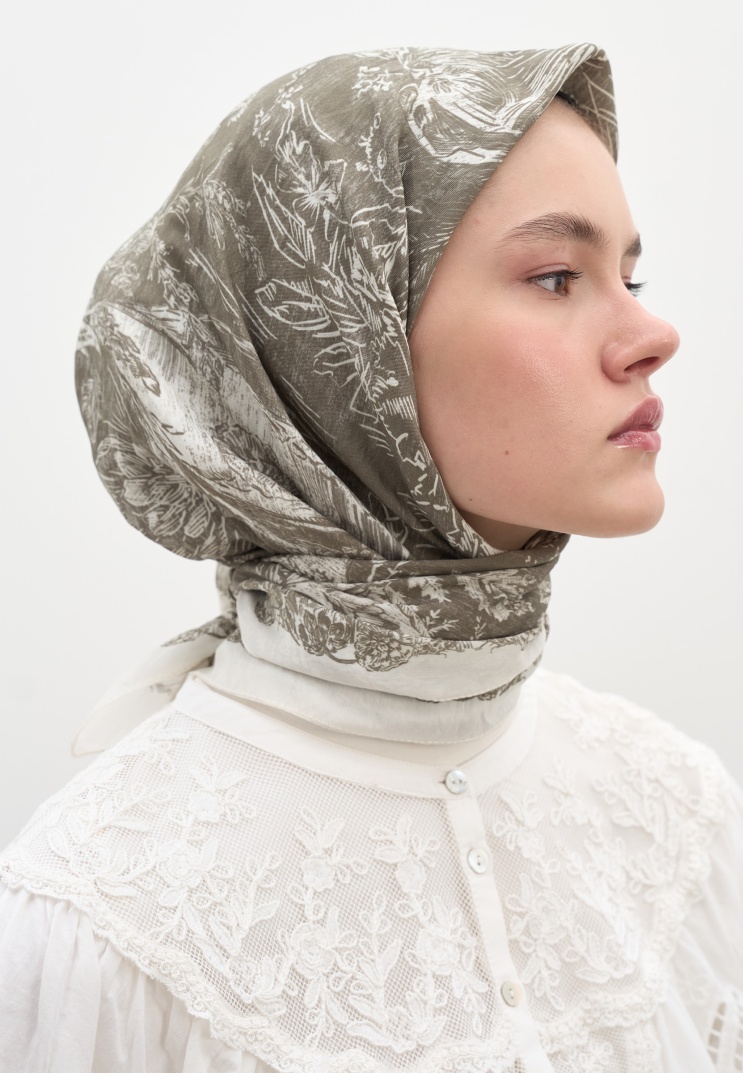 SECRET ELEGANCE PATTERNED COTTON VISCOSE SCARF KHAKI