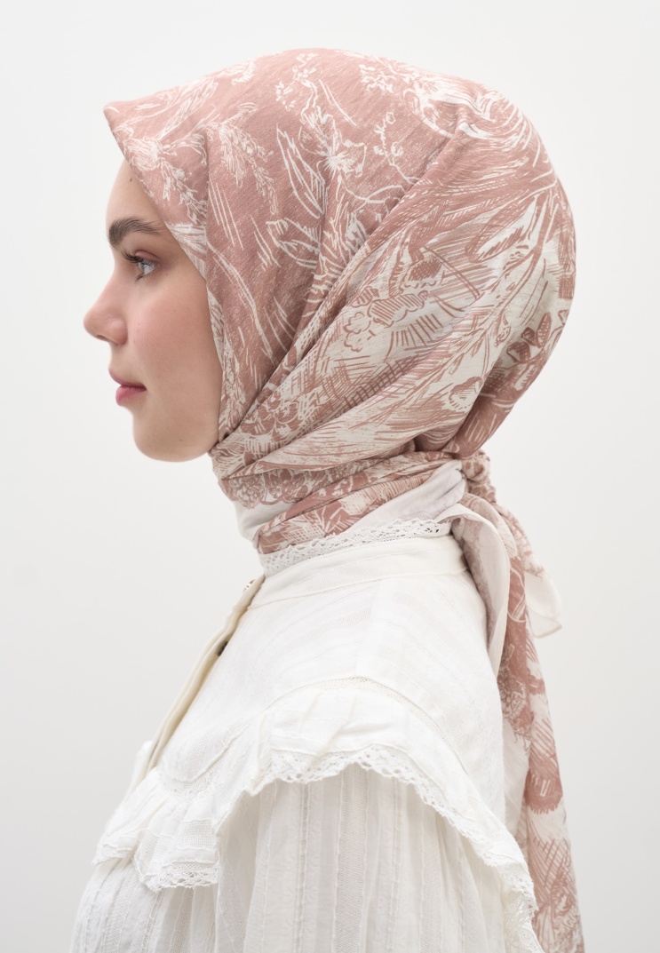 SECRET ELEGANCE PATTERNED COTTON VISCOSE SCARF SALMON