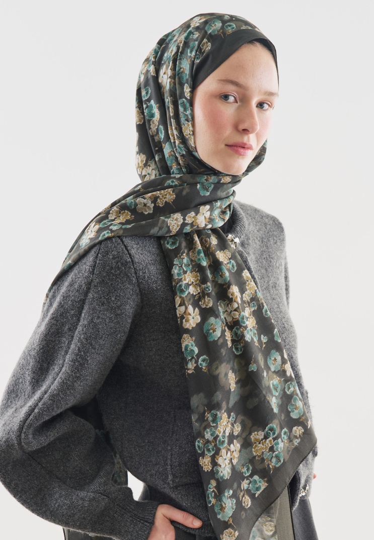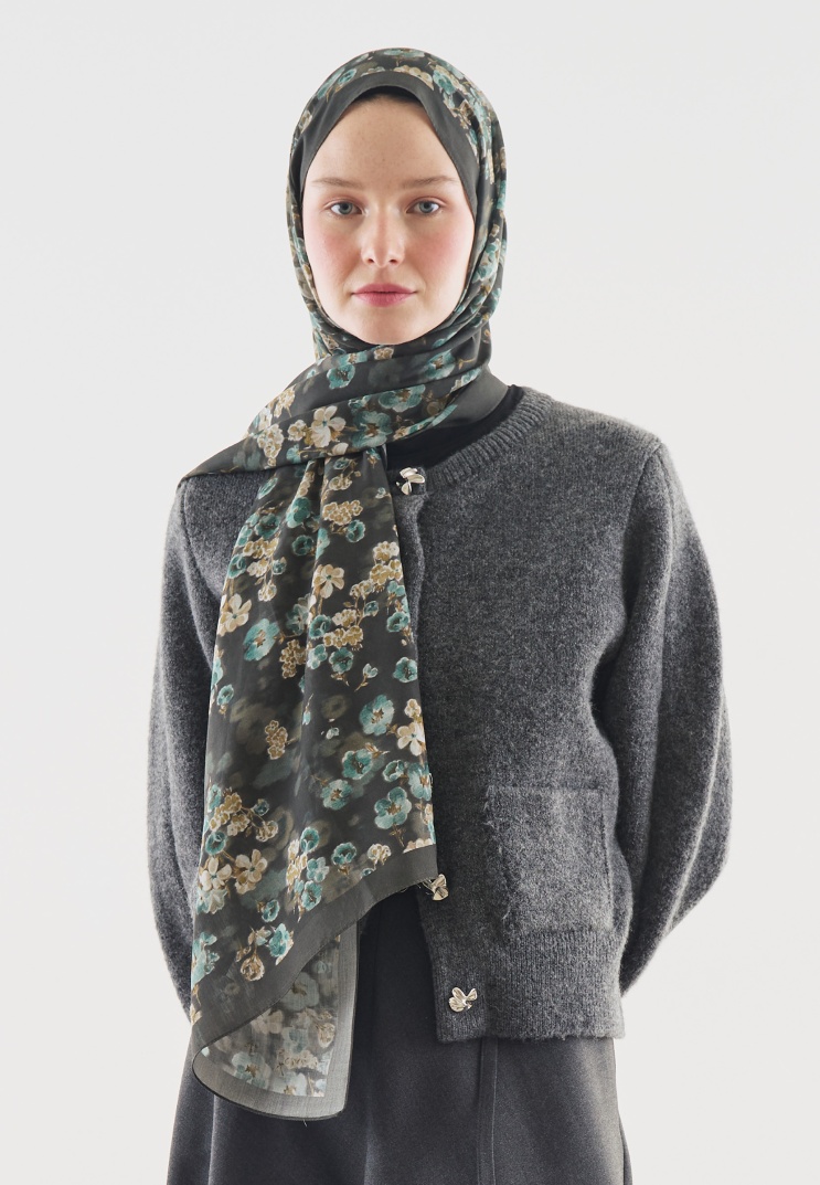 SECRET PEARL DESENLİ PAMUK VİSKON ŞAL DERİN YEŞİL