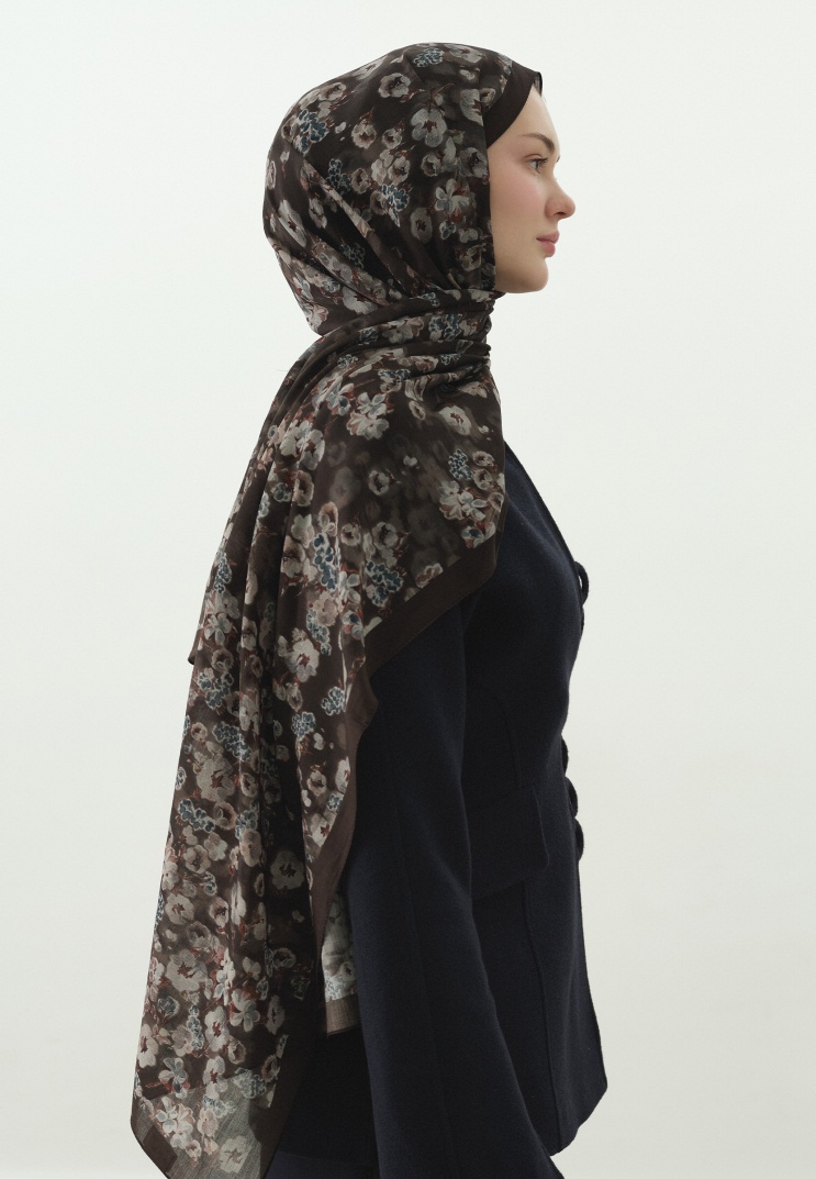 SECRET PEARL DESENLİ PAMUK VİSKON ŞAL TOZLU KAHVE