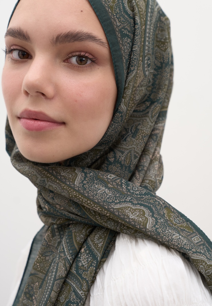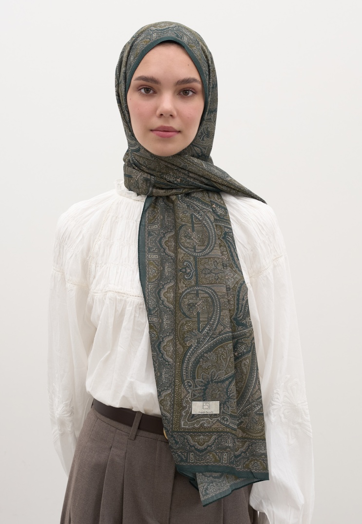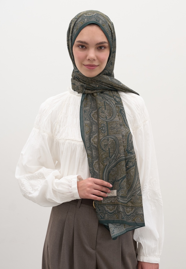 SLYVIE DESEN ŞAL KOYU YEŞİL