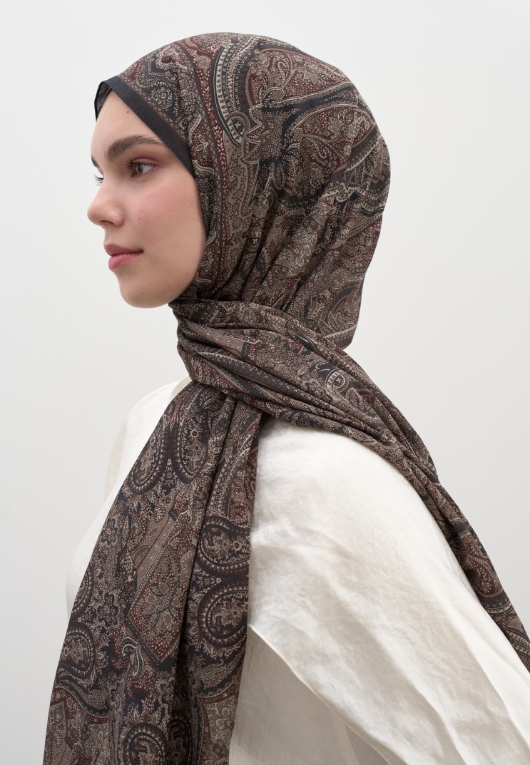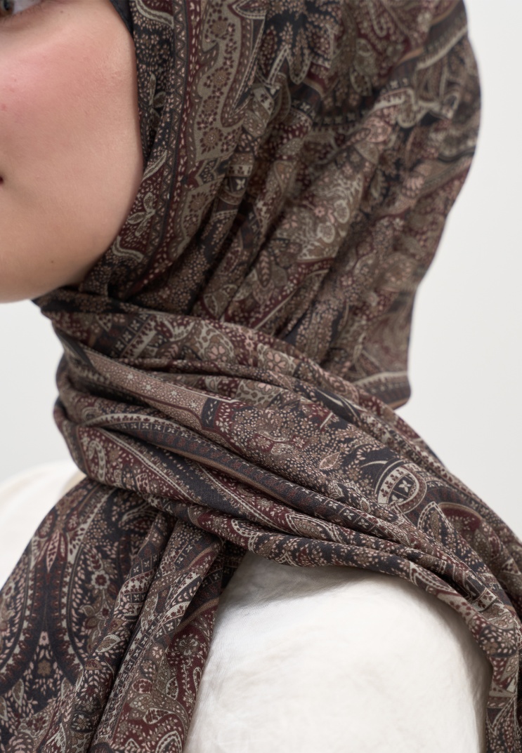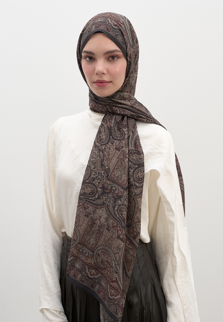 SLYVIE PRINTED SCARF BITTER COFFEE
