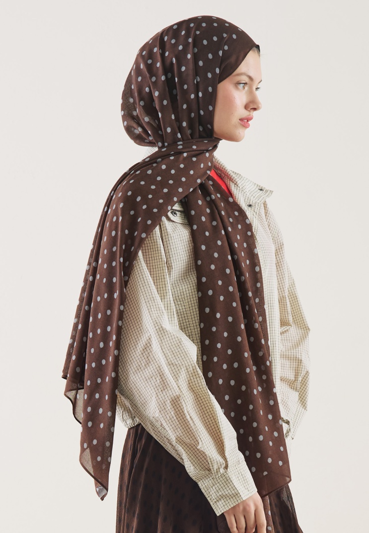 SMALL POLKA DOTS DESEN RAMİ ŞAL ÇİKOLATA