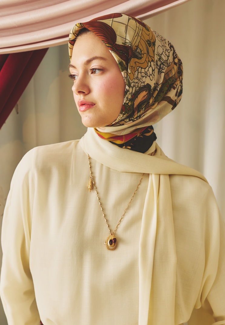 With its natural structure, fluid drape, silk-like feel, and breathable texture that provides all-day comfort, the viscose fabric is brought together with romantic patterns inspired by a fairytale world. The Letters Of Pure Love Hijab Collection presents each hijab with a unique story.