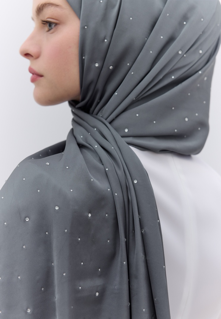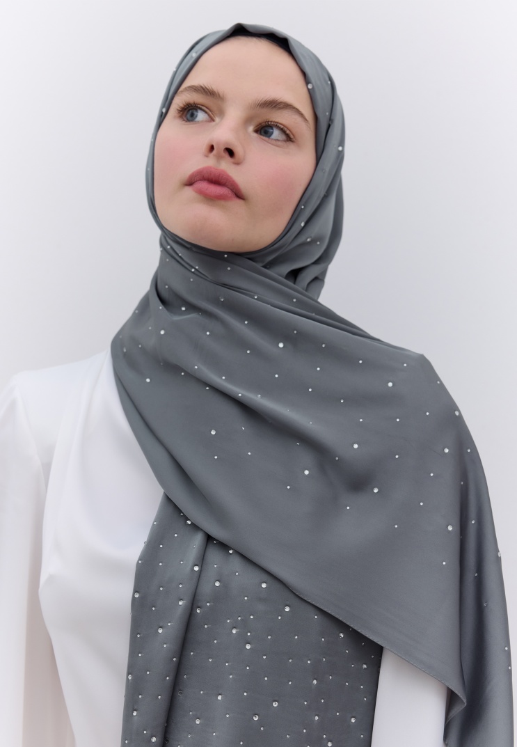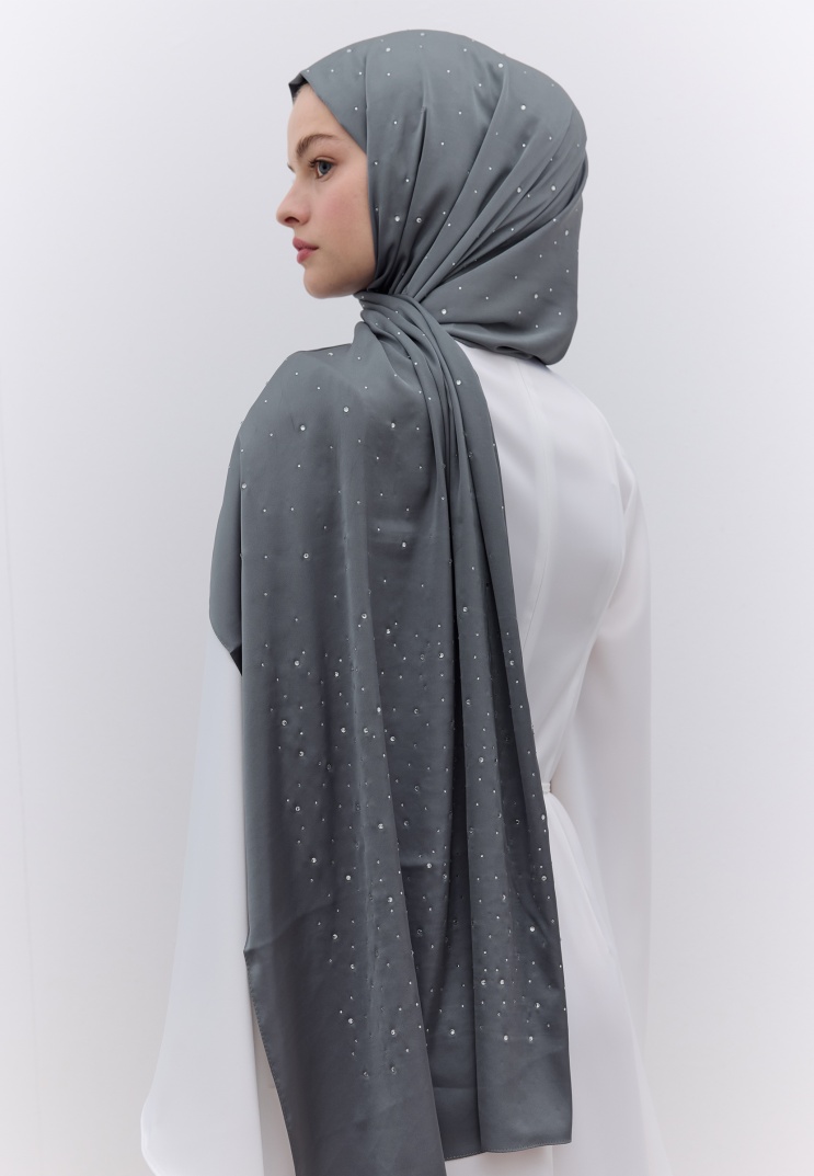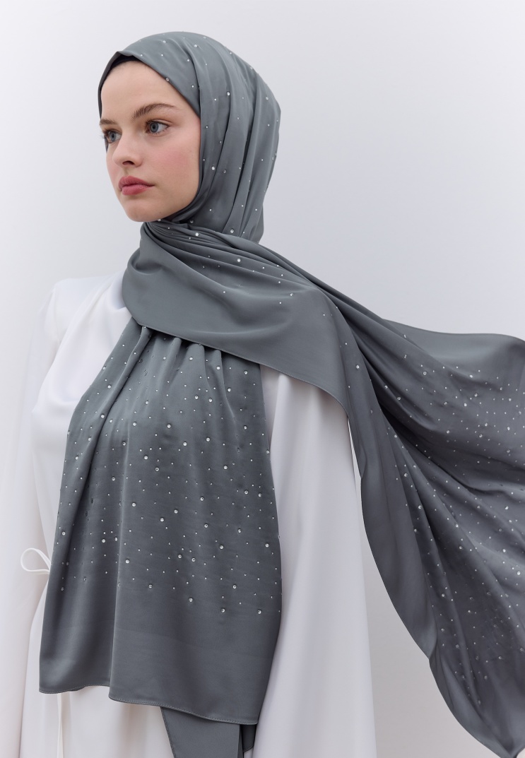 STRASS TAŞLI İPEKSİ ŞAL FÜME
