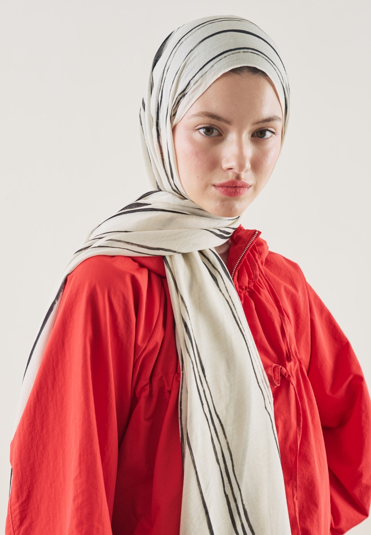 STRIPED PATTERN RAMI HIJAB ECRU