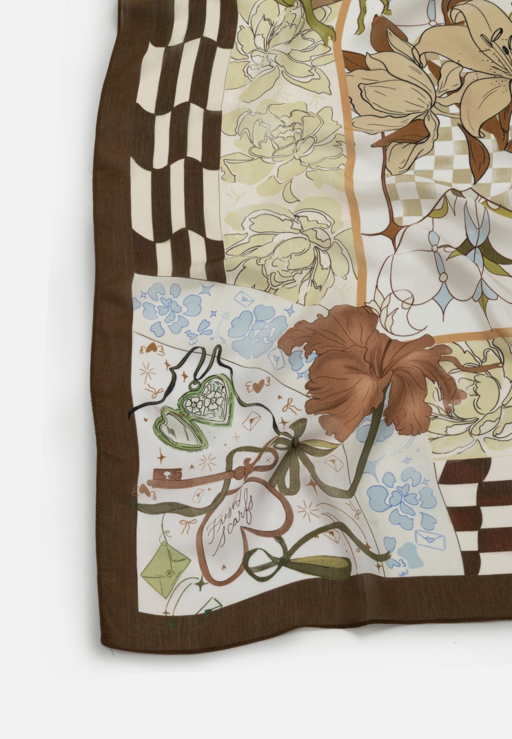 Doğal yapısı, akışkan duruşu, ipek hissi veren ve nefes alabilen dokusu ile gün boyu konfor sağlayan viskon kumaşı, masal dünyasından ilham alınan romantik desenler ile buluşturan Letters Of Pure Love Eşarp Koleksiyonu, her eşarbı eşsiz bir hikaye ile size sunar.