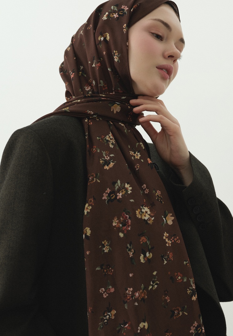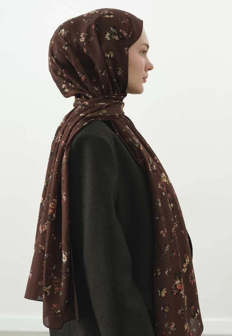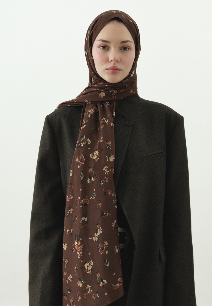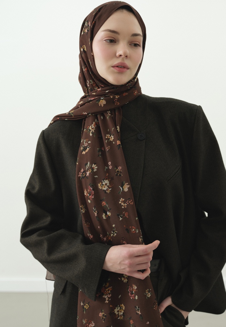 TINY BLOOMS DESENLİ PAMUK VİSKON ŞAL SICAK KAHVE