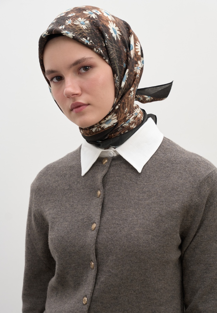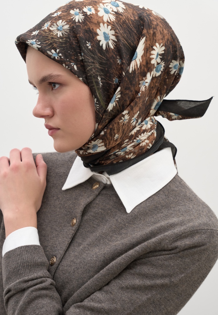 TINY DAISY PATTERNED COTTON VISCOSE SCARF BROWN